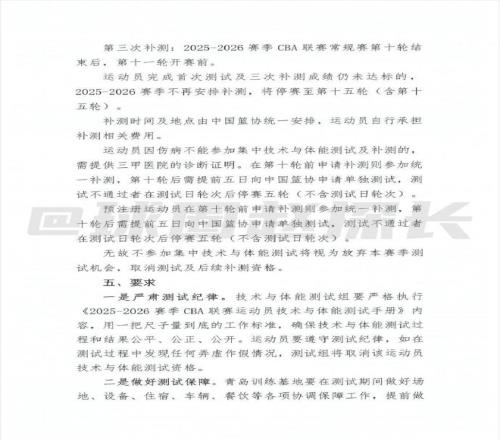 据探长了解,中国篮协已向CBA各俱乐部下发新赛季体测通知。