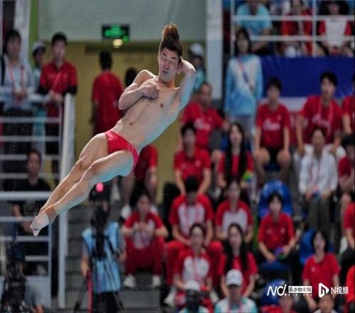 11月10日,十五运会跳水项目继续在广东奥体中心游泳跳水馆进行,在男子个人三米板决赛中,湖北队的奥运冠军王宗源没有悬念斩获金牌,湖北队郑九源获得亚军,广东老将何超摘得铜牌。